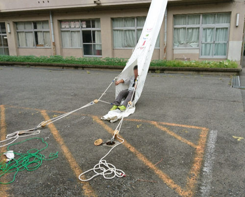 相模原市立小中学校の点検を行った時、救助袋の点検も行いました。