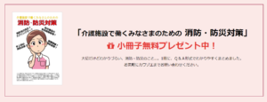 お問い合わせいただいた方には、介護施設の消防対策について詳しく説明した小冊子をプレゼントいたしますので、ぜひご覧ください!