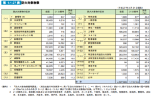 消防白書によると、平成 27 年3月 31 日現在、全国の防火対象物数は、402 万 7989 件です。