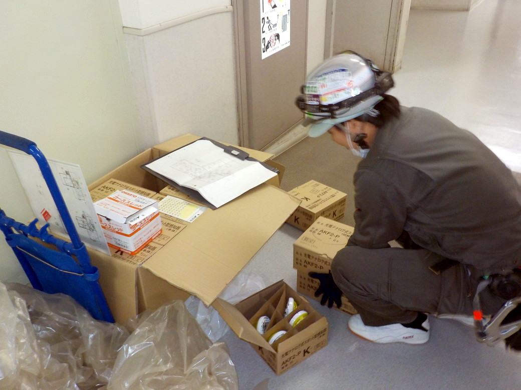 1フロア分の感知器…一つずつ交換します。