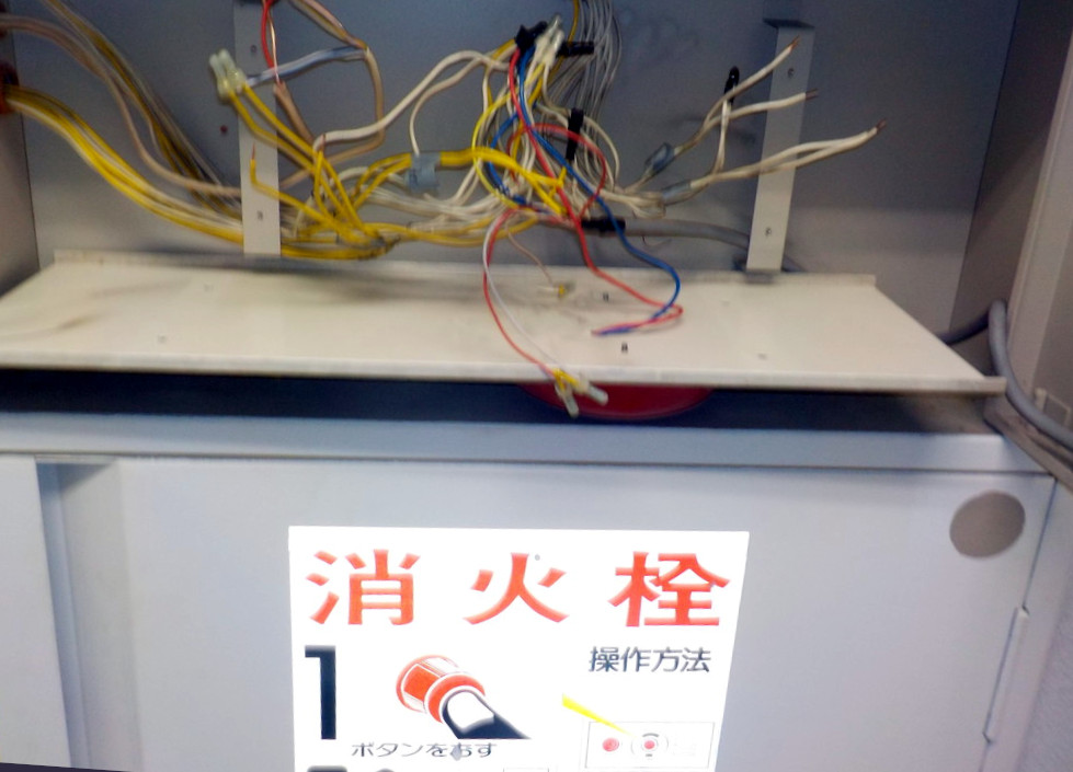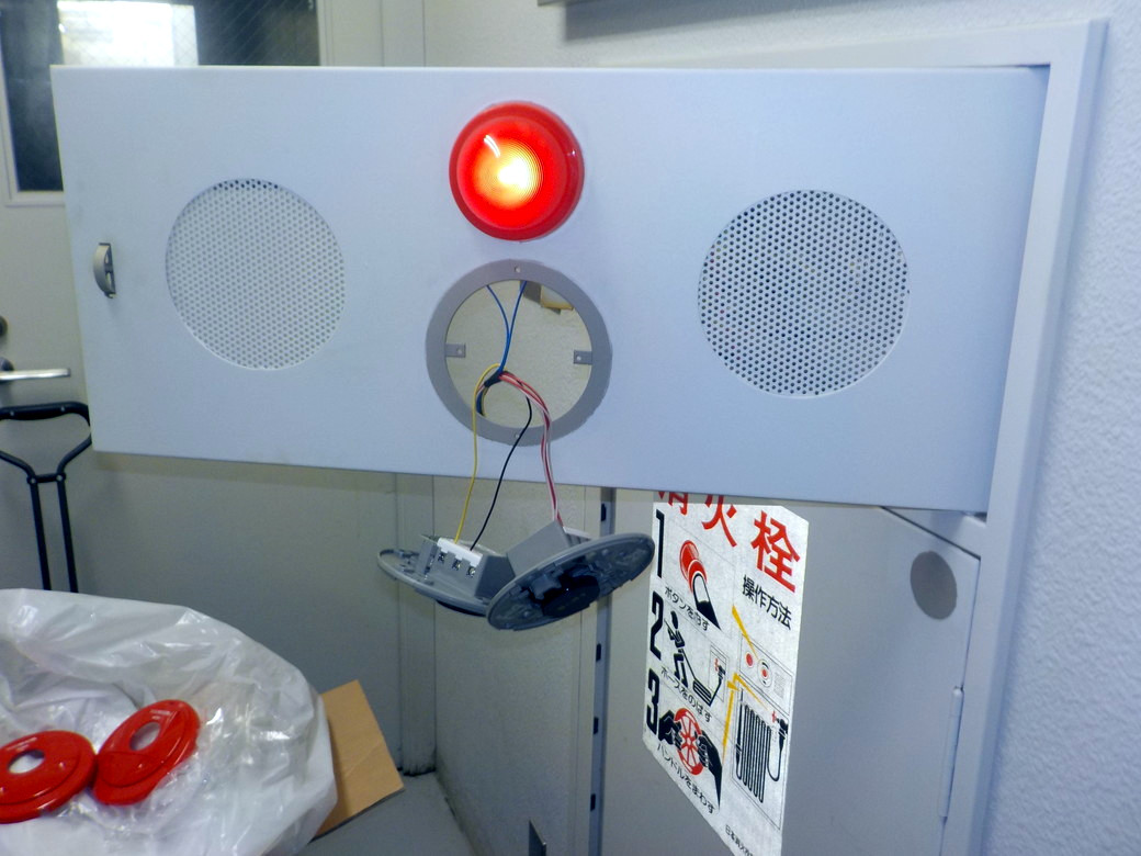 消火栓箱の非常ベル・ランプ・発信機も交換します。