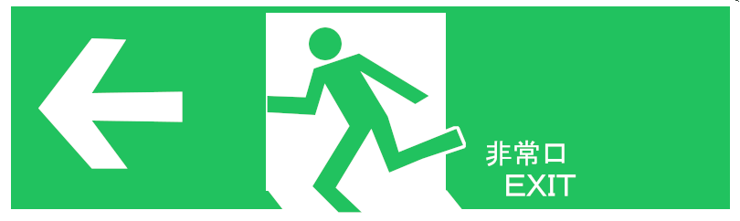 薄型のLEDタイプが流通する前は、下図のような、ピクトグラムをメインにした横に長い誘導灯がメジャーでした。