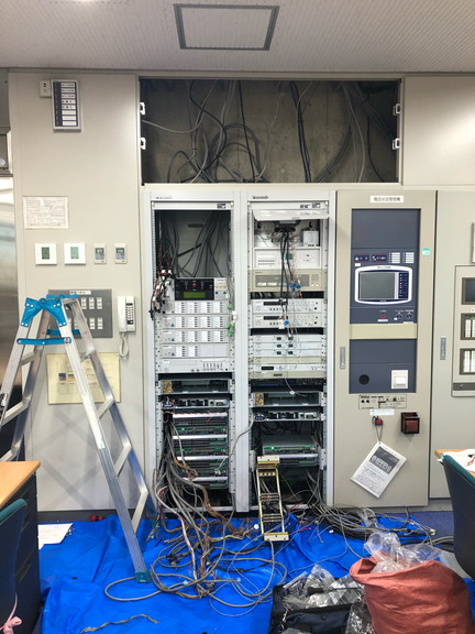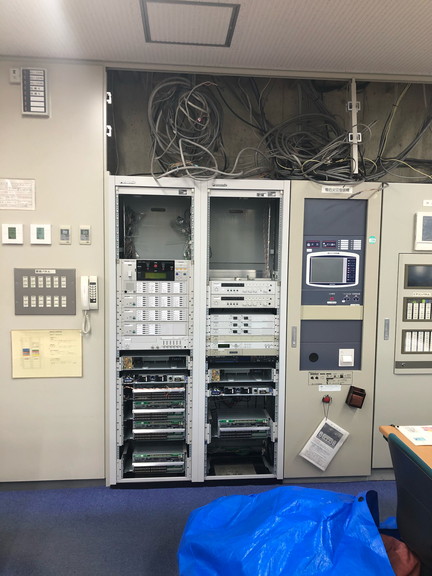 機器を交換するにはこの棚(ラック)を壁際から一度出す必要がありますが、
