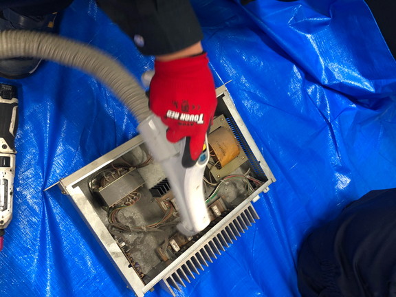 はずしたアンプ等、中にはホコリがたくさん。軽く掃除します。