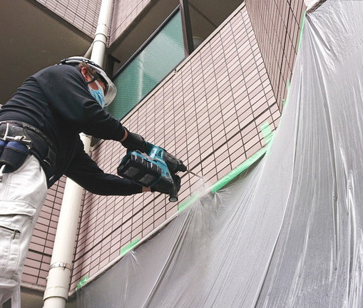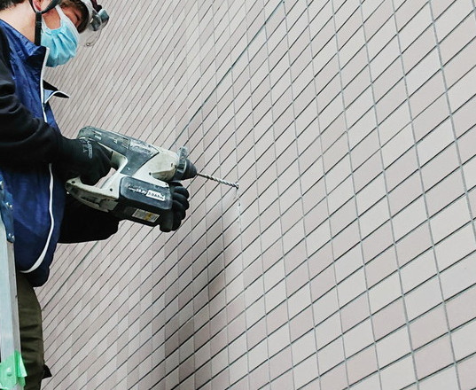 外壁にアンカーを打設して、支持金具を取り付け