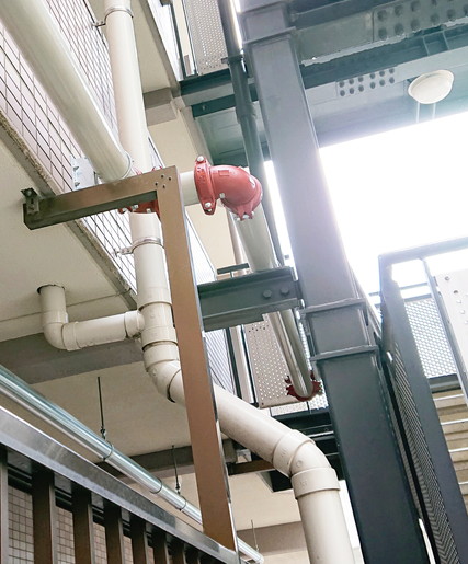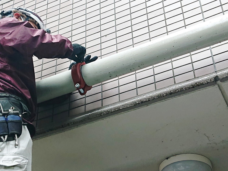 パイプを設置し、ハウジング継手で接続。配管同士を溶接する必要がありません。