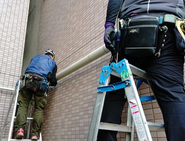 既存の配管を一部使用したまま、地中を通っている部分の経路を変更して、屋外露出配管(建物の外側に直接パイプを添わせて設置する形)に切り替えるという形で対応することになりました。