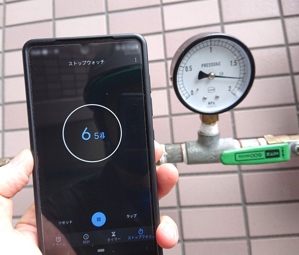 耐圧5分後(1.75MPa変化なし)
