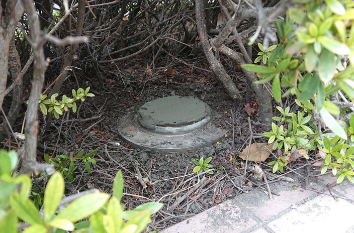 このマンションでは、建物内部から地中へ配管→植え込み部に送水口 という形で設置されていましたが、地中に埋設している部分で漏れが発生したという事です。