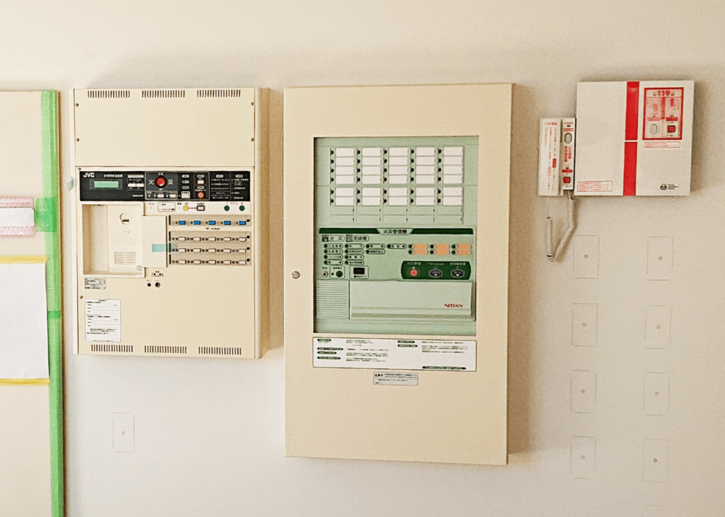 今回設置したのは、火災受信機、放送盤、火災通報装置です。