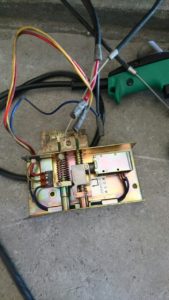 左が取り外したシャッターの自動閉鎖装置の写真、