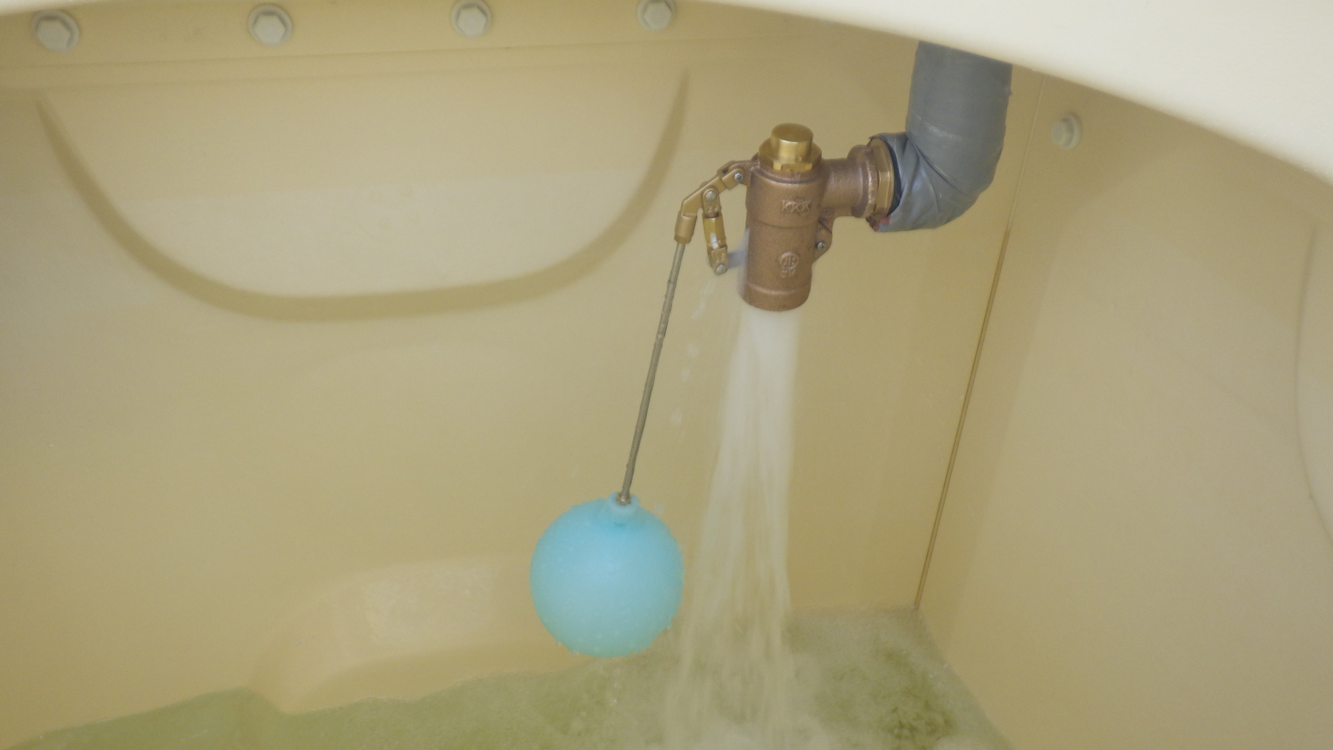 新しいボールタップを設置。水を入れ替えるために給水しています。