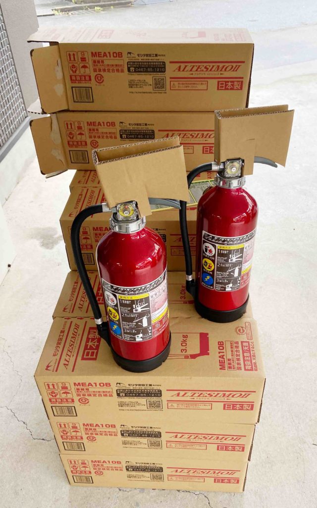 今回は相模原市内の老人ホームで消防設備点検をし、消火器の交換をしました。