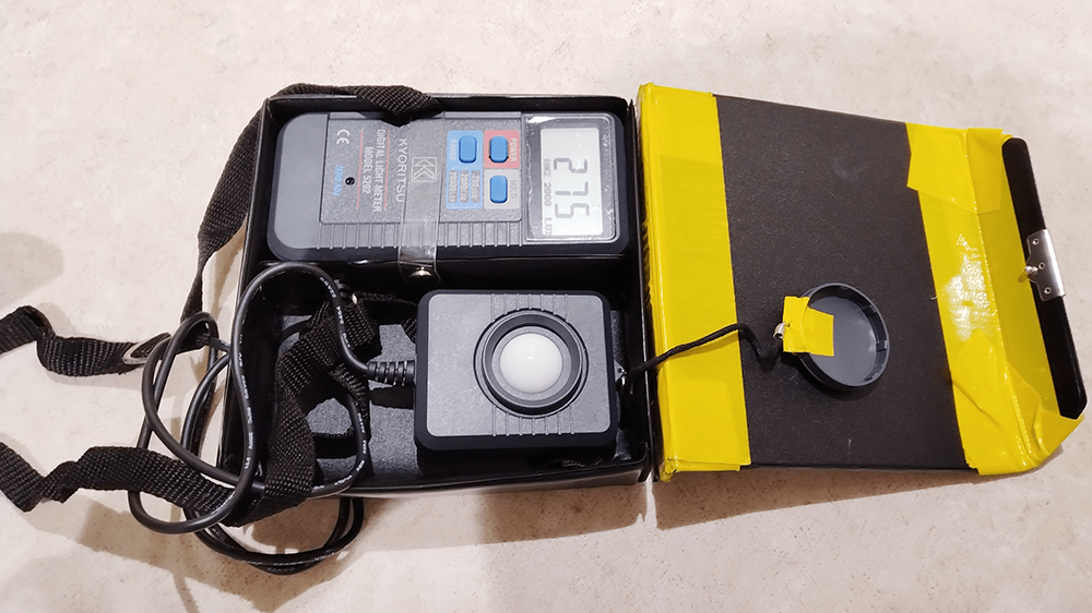 このような照度計を使い非常照明の照度を計測します。