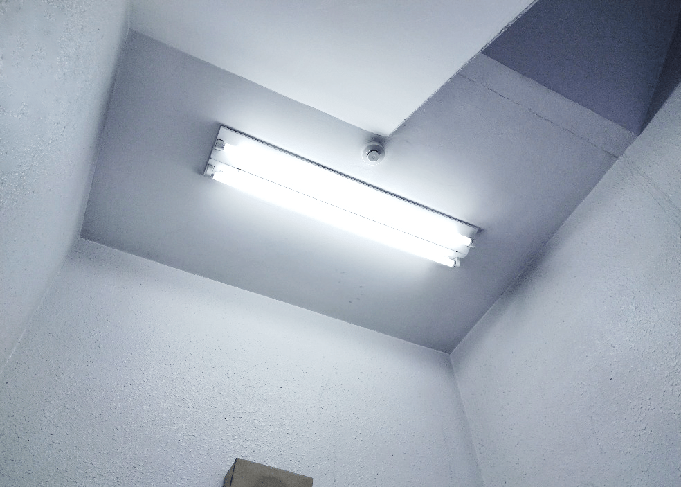 まずは、光電式スポット型感知器の発報試験をします。