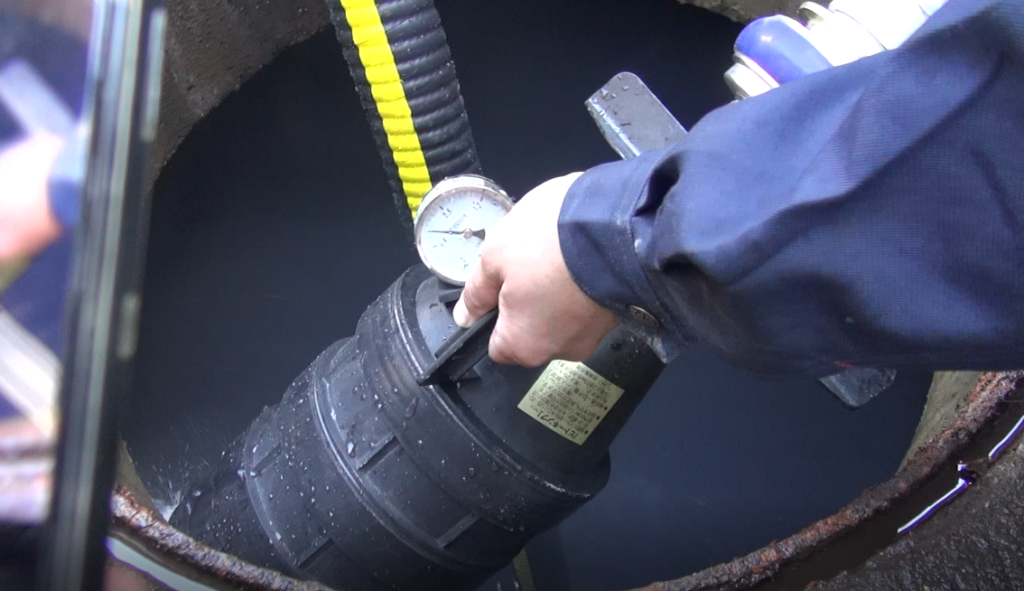 テストが終わったら、ホースを外し、本体と一緒に雨風のあたらないところに格納して、格納場所の入り口に標示を設置。