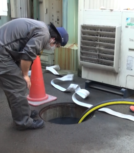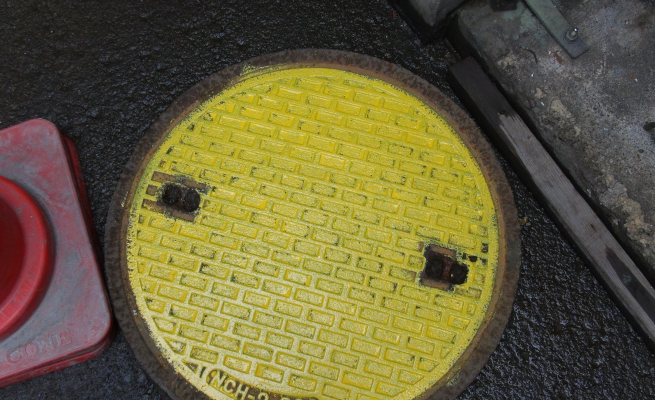 今回納品するにあたって、消火水槽のマンホールにペイントしました。