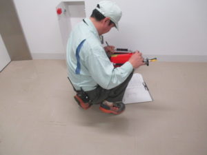 防火対象物(特定防火対象物であればすべて、その他の防火対象物では消防長が指定するもの)については、我々のような資格者(消防設備士、消防設備点検資格者)が点検を行い、消防庁に報告します。それ以外の建築物については、資格者でなくても点検し、消防庁への報告が認められています。報告は、特定防火対象物については1年に1回、その他の防火対象物については3年に1回とされています。